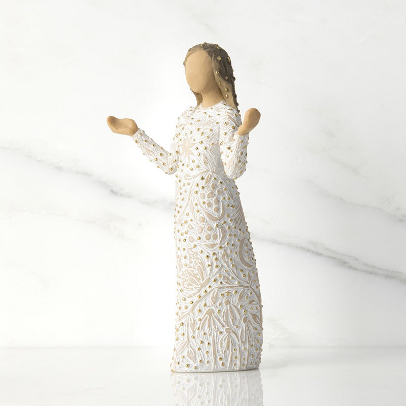 A celebration of the natural beauty all around us–the small miracles that lift our spirits and enrich our lives. This figure could be a welcoming presence in one's home, a healing gift to a friend, or an addition to the Nativity Collection.